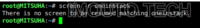 有过了一段时间再次连接回去,使用screen -r oneinstack时,却提示There is no screen to be resumed matching oneinstack.